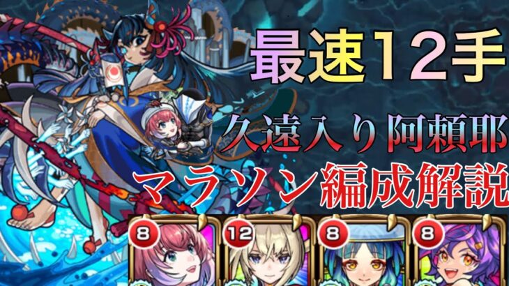【モンスト】最速12手!!阿頼耶マラソン久遠入り編成紹介【阿頼耶周回】