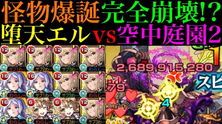 【モンスト】これ以上ないくらいクエストがぶっ壊れてる!?ボス2ワンパンも超簡単!!新春限定『エル:堕天モード』を空中庭園2で使ってみた!!これは最新ガチパ採用!!【天魔の孤城 第2の園】